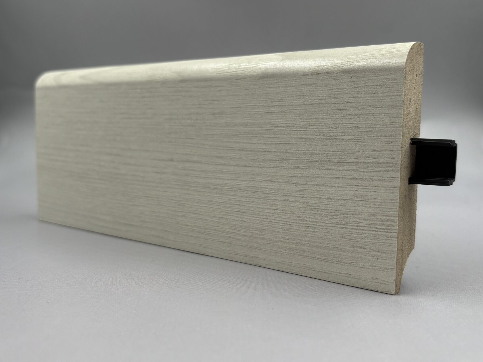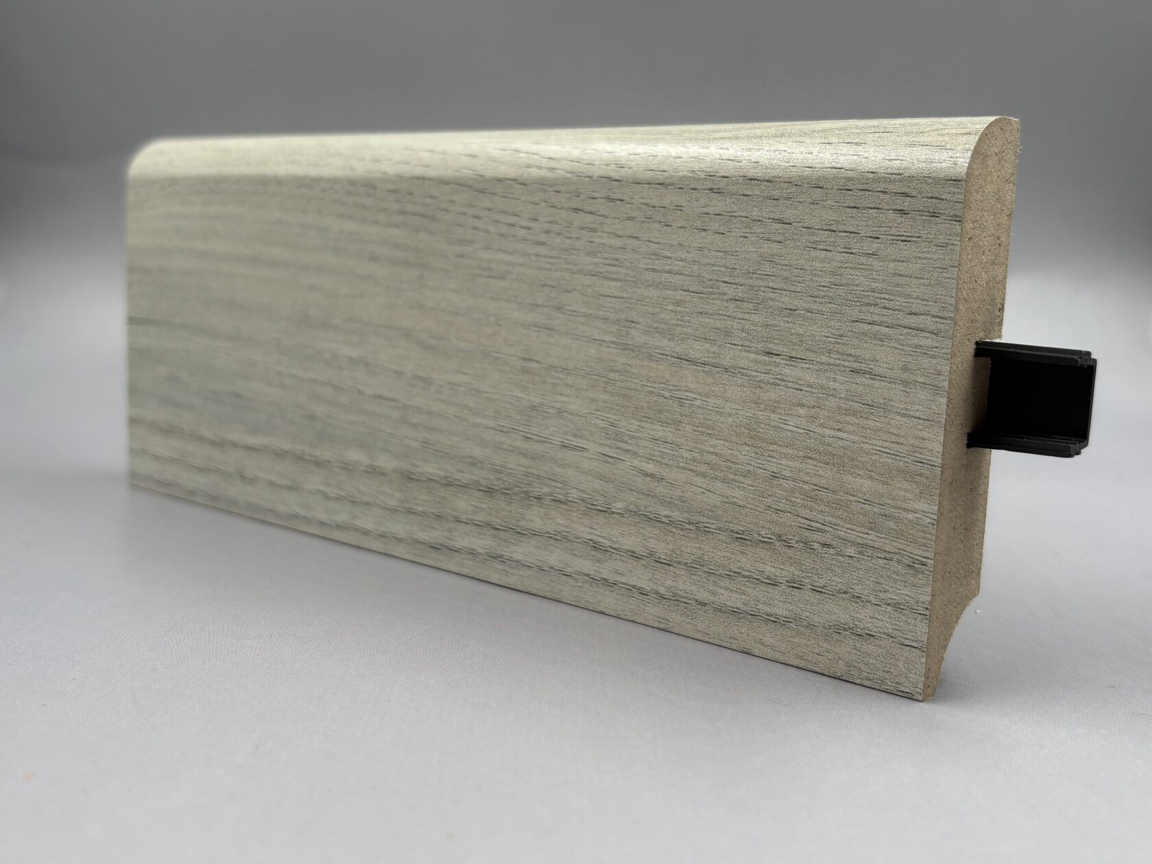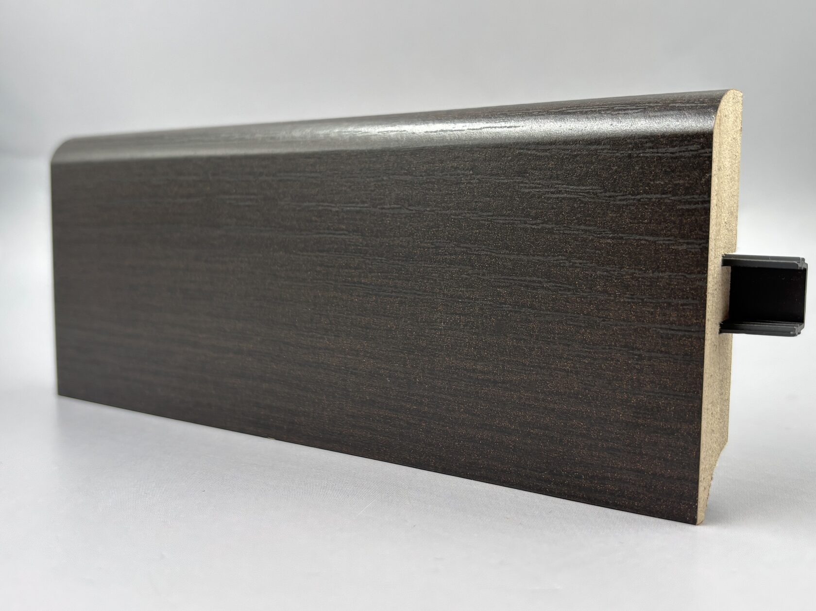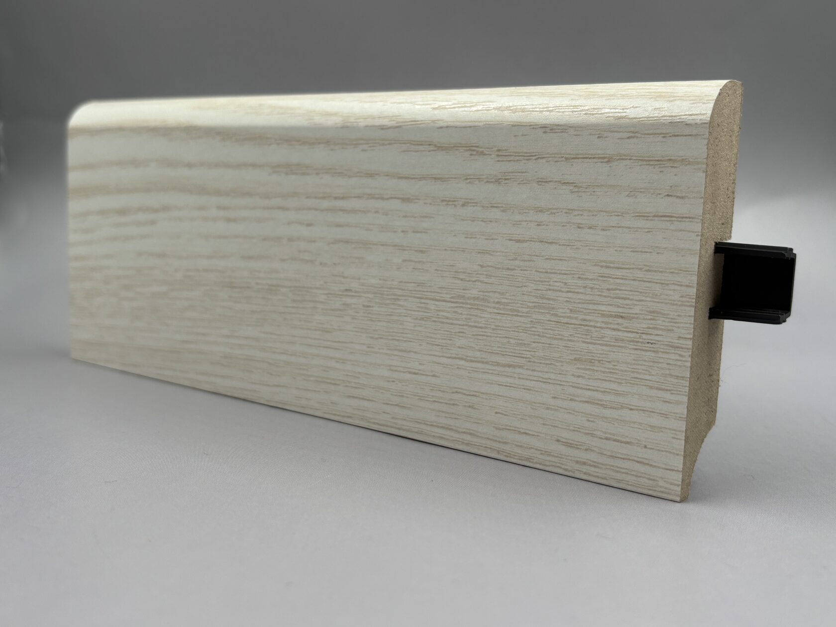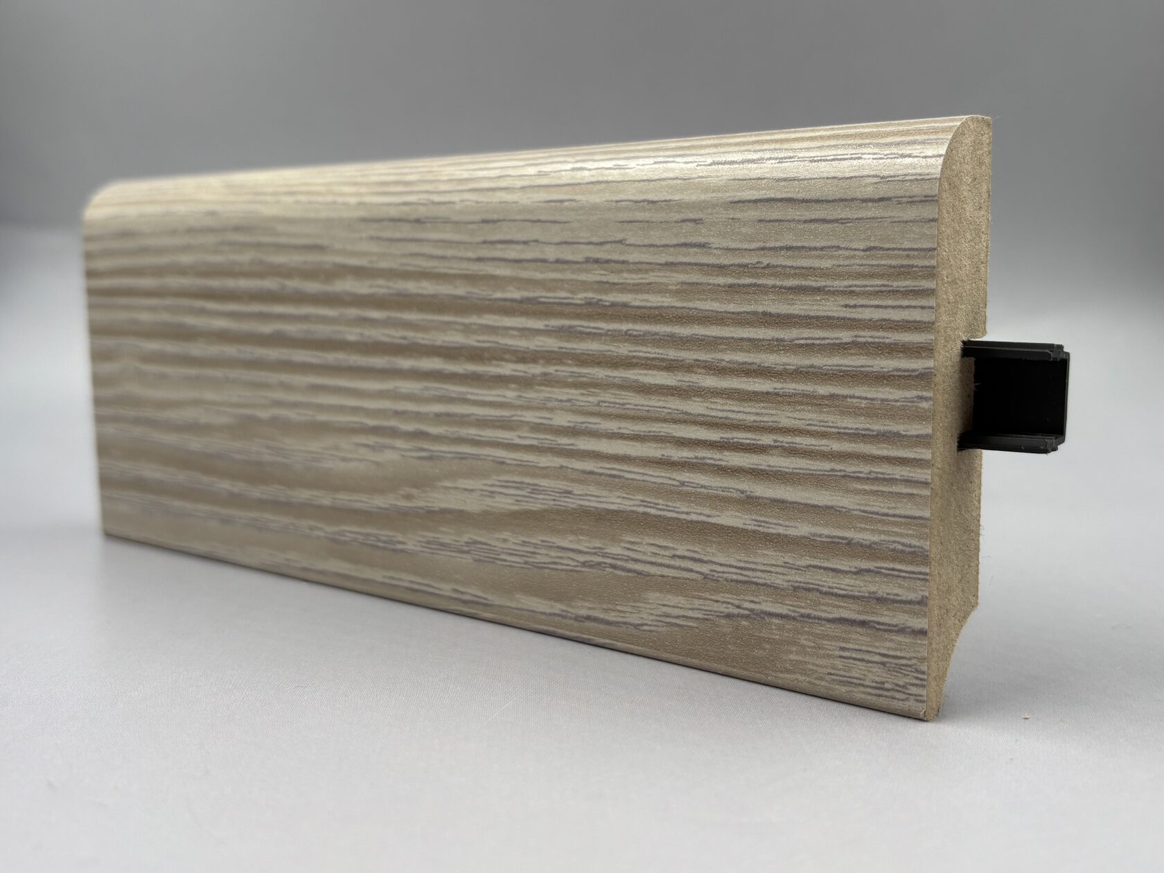 Плинтус МДФ создан под самые популярные оттенки напольных покрытий. Оснащен защитным полимерным слоем, который предохраняет от влаги, царапин и химии для уборки. Его безупречная поверхность не притягивает грязь, устойчива к солнцу. Возможна покраска под любой оттенок.