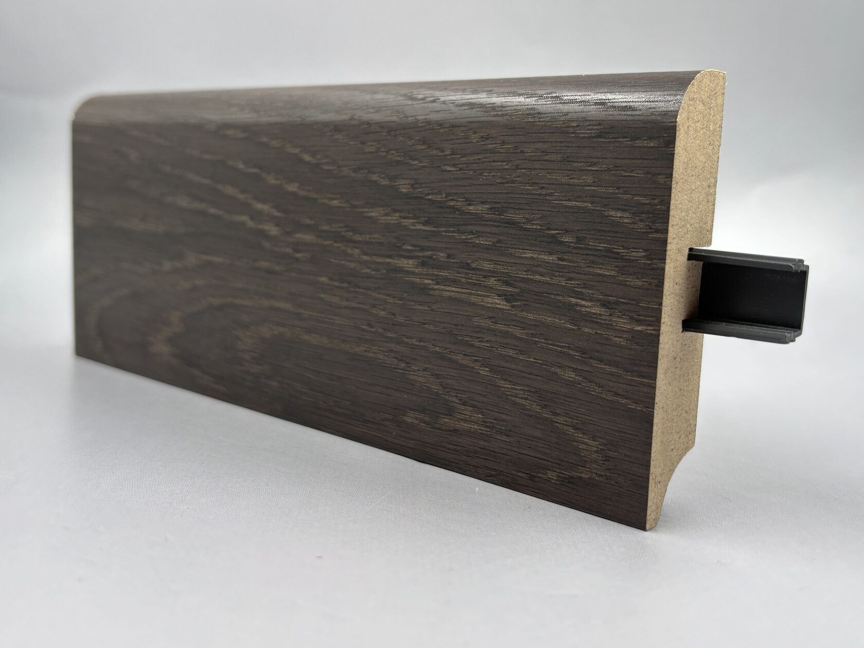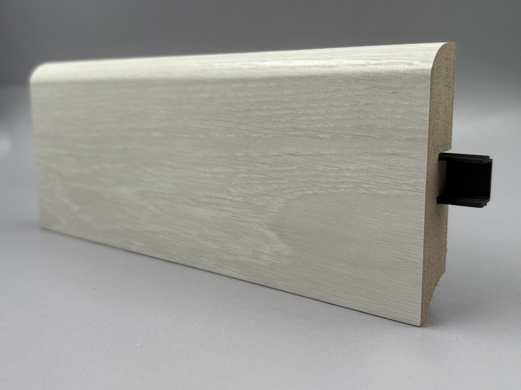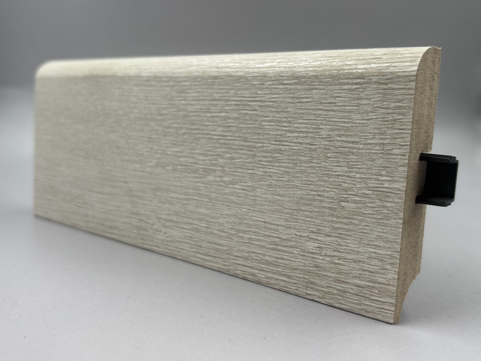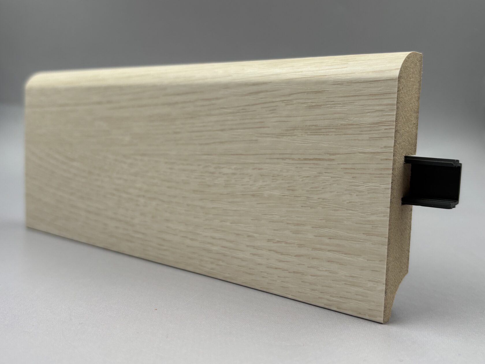 Плинтус МДФ создан под самые популярные оттенки напольных покрытий. Оснащен защитным полимерным слоем, который предохраняет от влаги, царапин и химии для уборки. Его безупречная поверхность не притягивает грязь, устойчива к солнцу. Возможна покраска под любой оттенок.