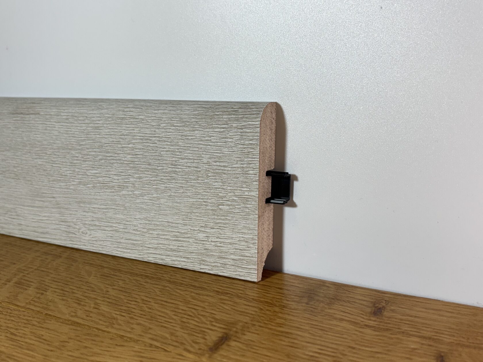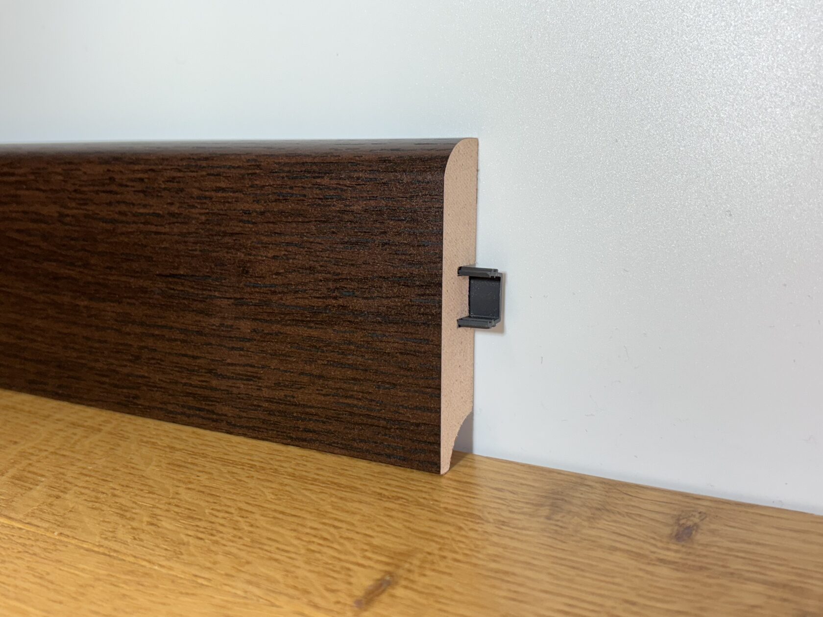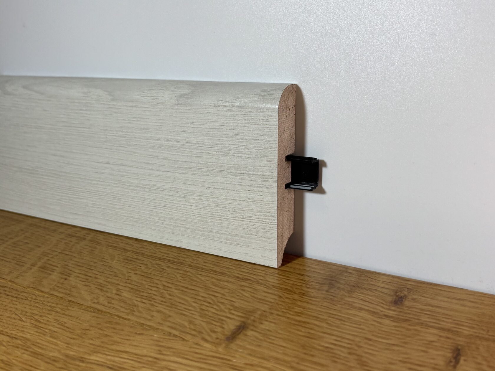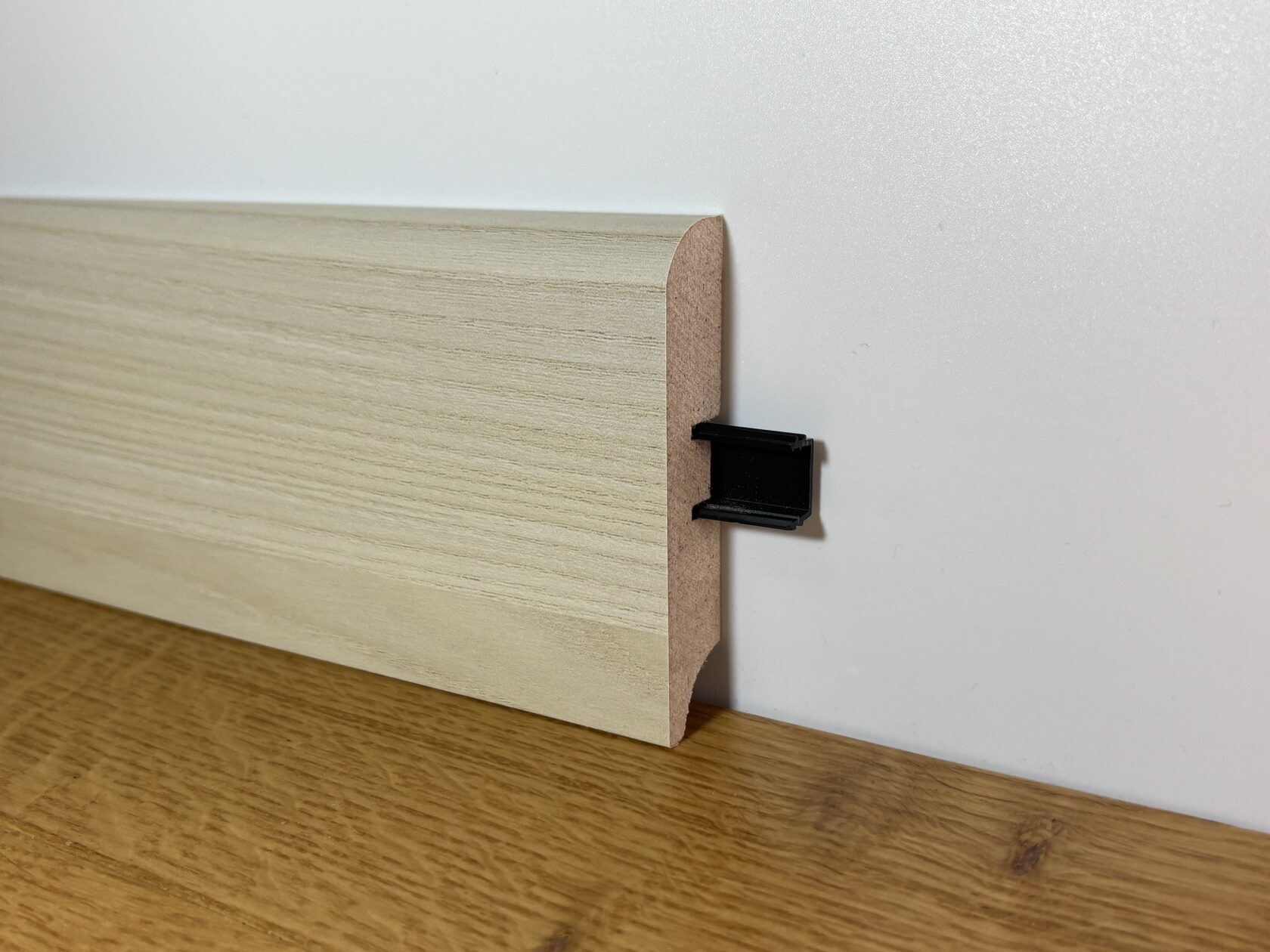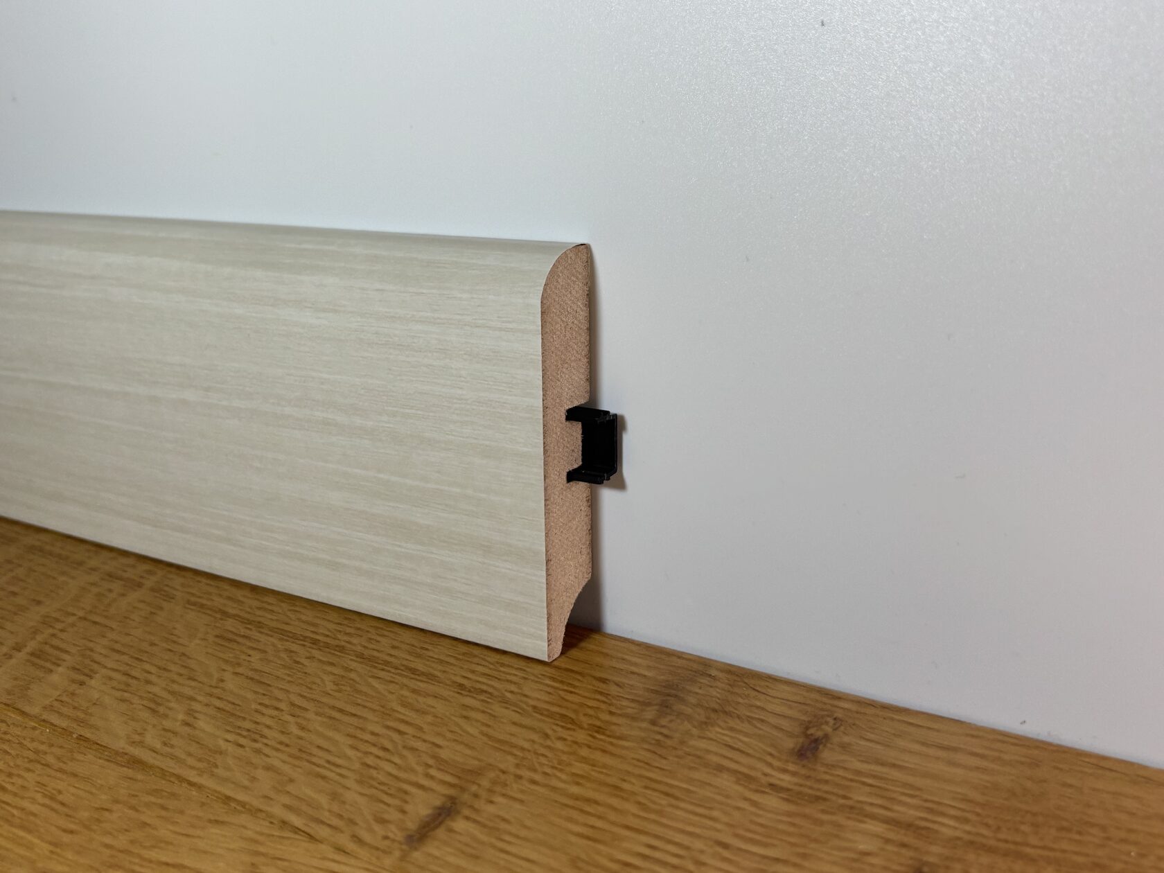 Плинтус МДФ создан под самые популярные оттенки напольных покрытий. Оснащен защитным полимерным слоем, который предохраняет от влаги, царапин и химии для уборки. Его безупречная поверхность не притягивает грязь, устойчива к солнцу. Возможна покраска под любой оттенок.