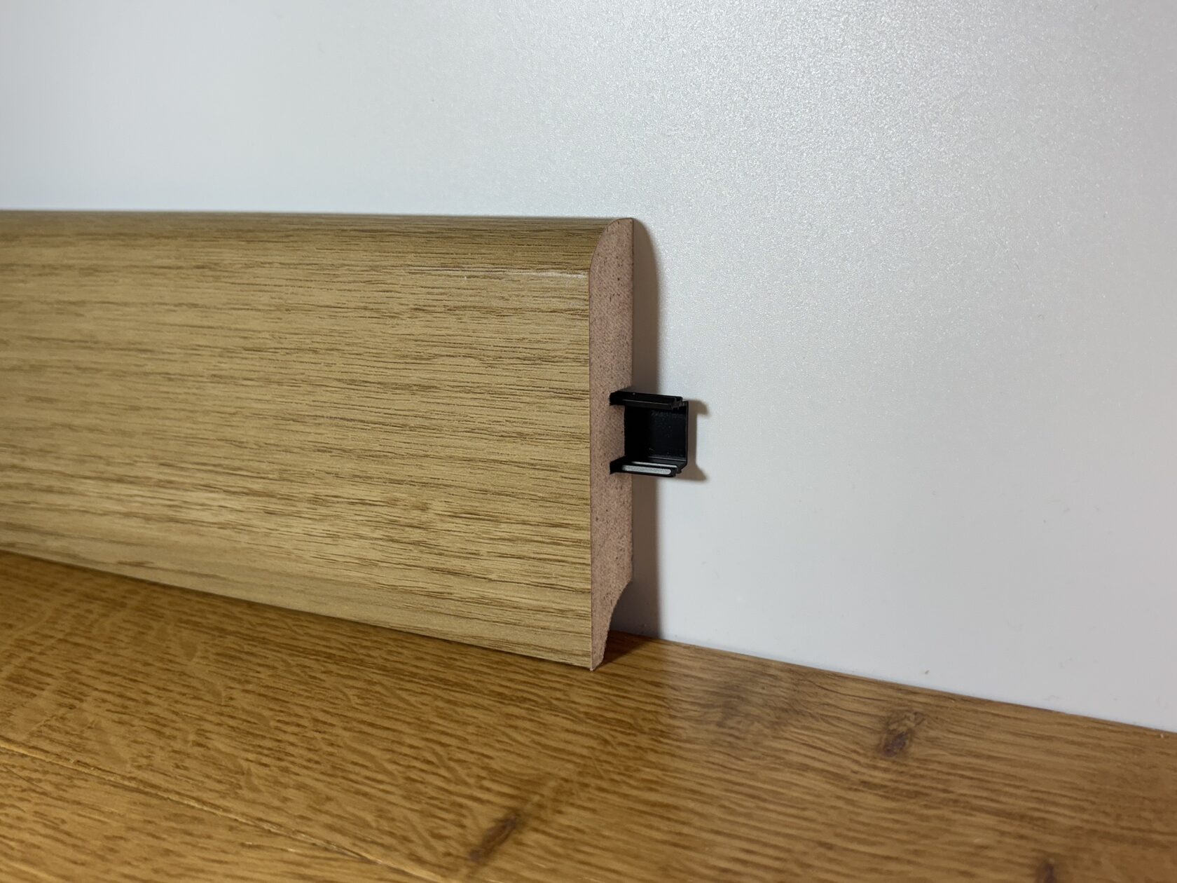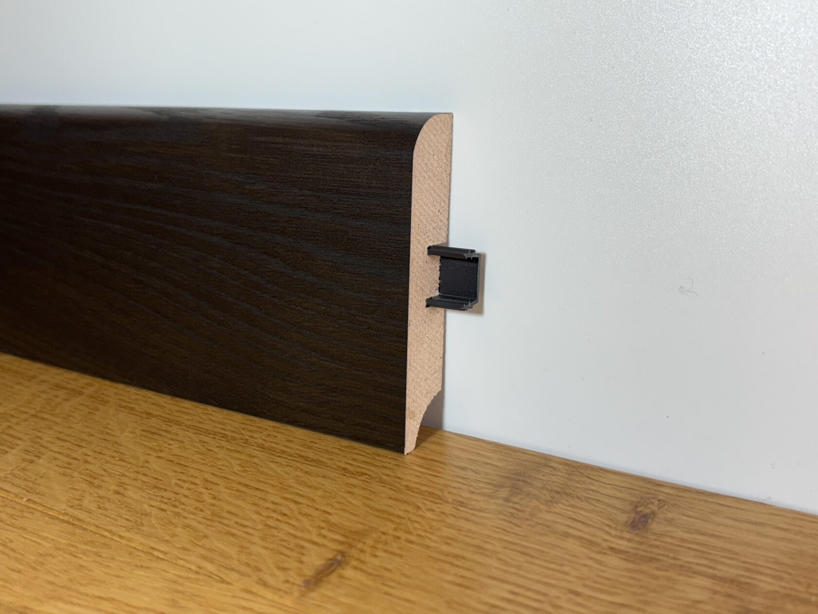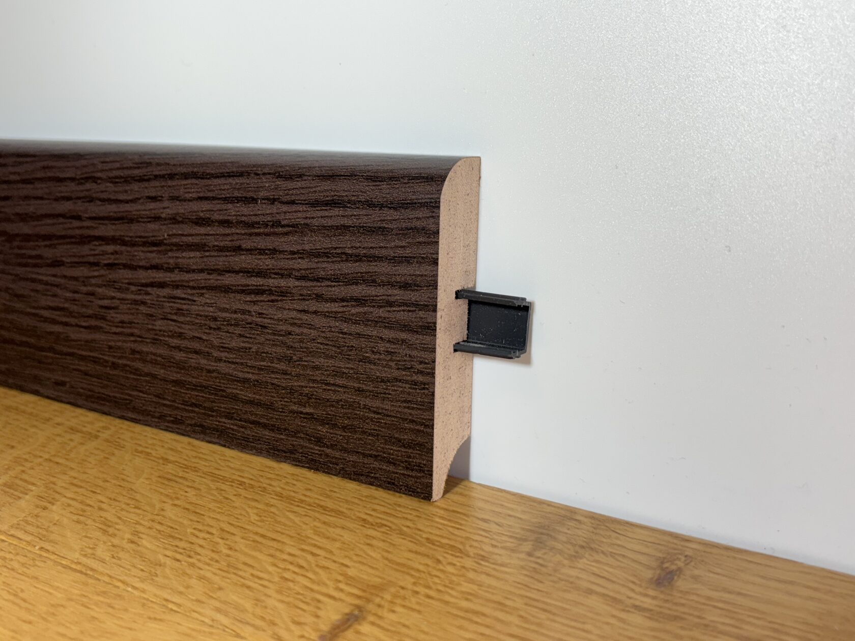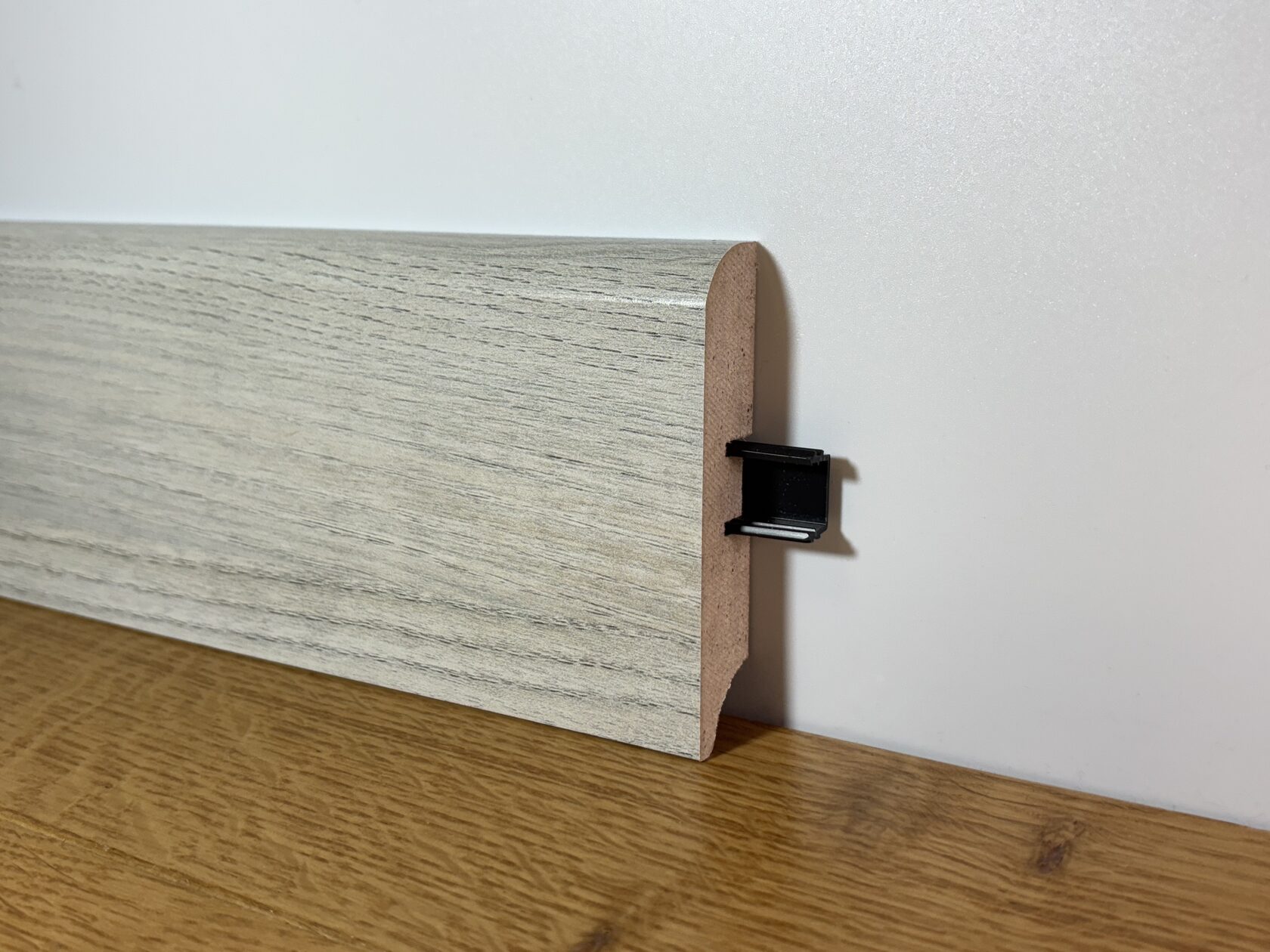Плинтус МДФ создан под самые популярные оттенки напольных покрытий. Оснащен защитным полимерным слоем, который предохраняет от влаги, царапин и химии для уборки. Его безупречная поверхность не притягивает грязь, устойчива к солнцу. Возможна покраска под любой оттенок.