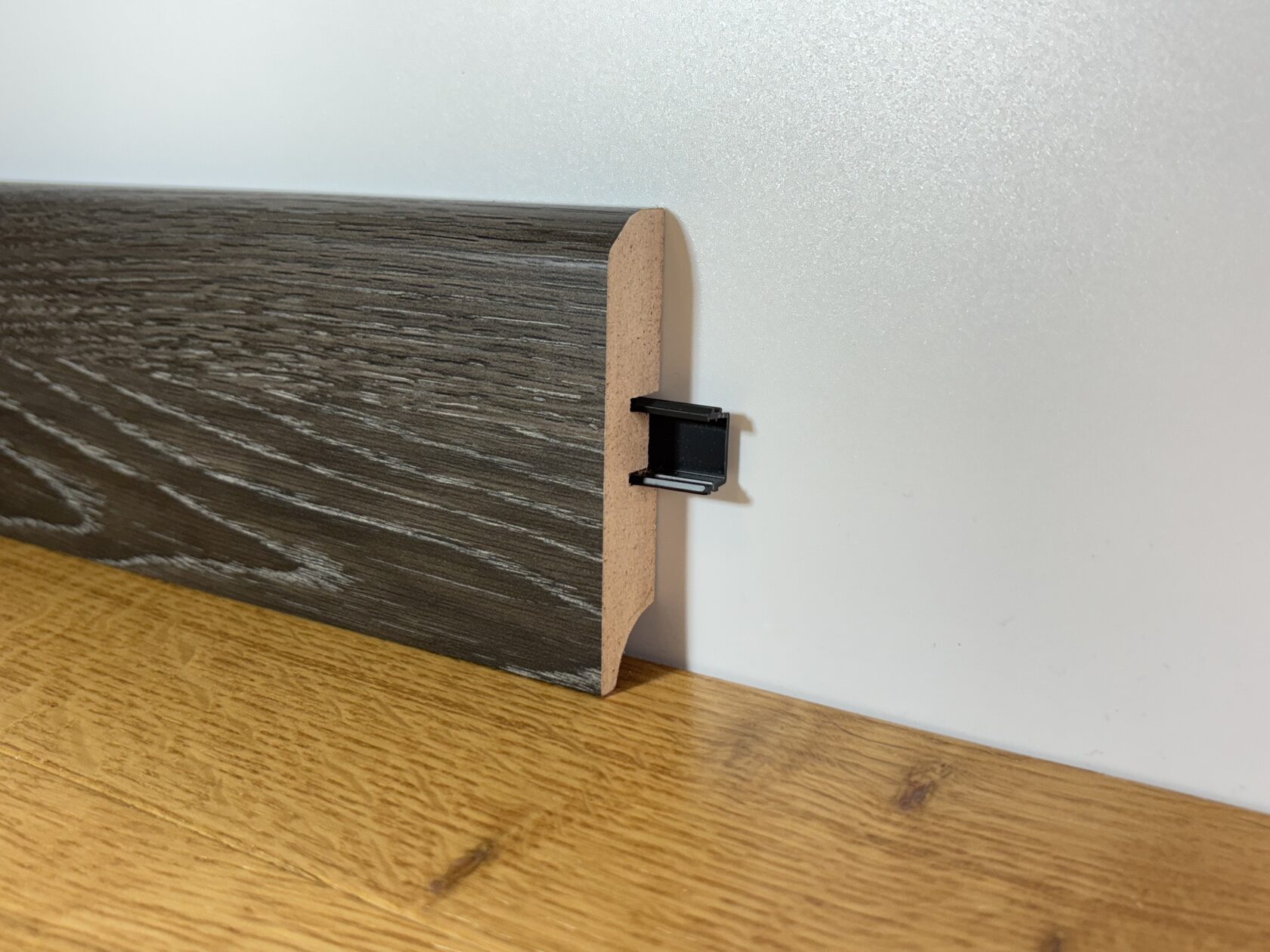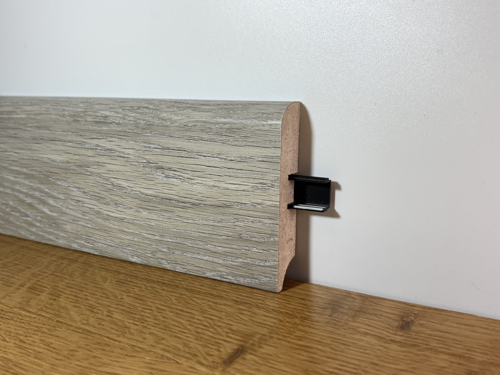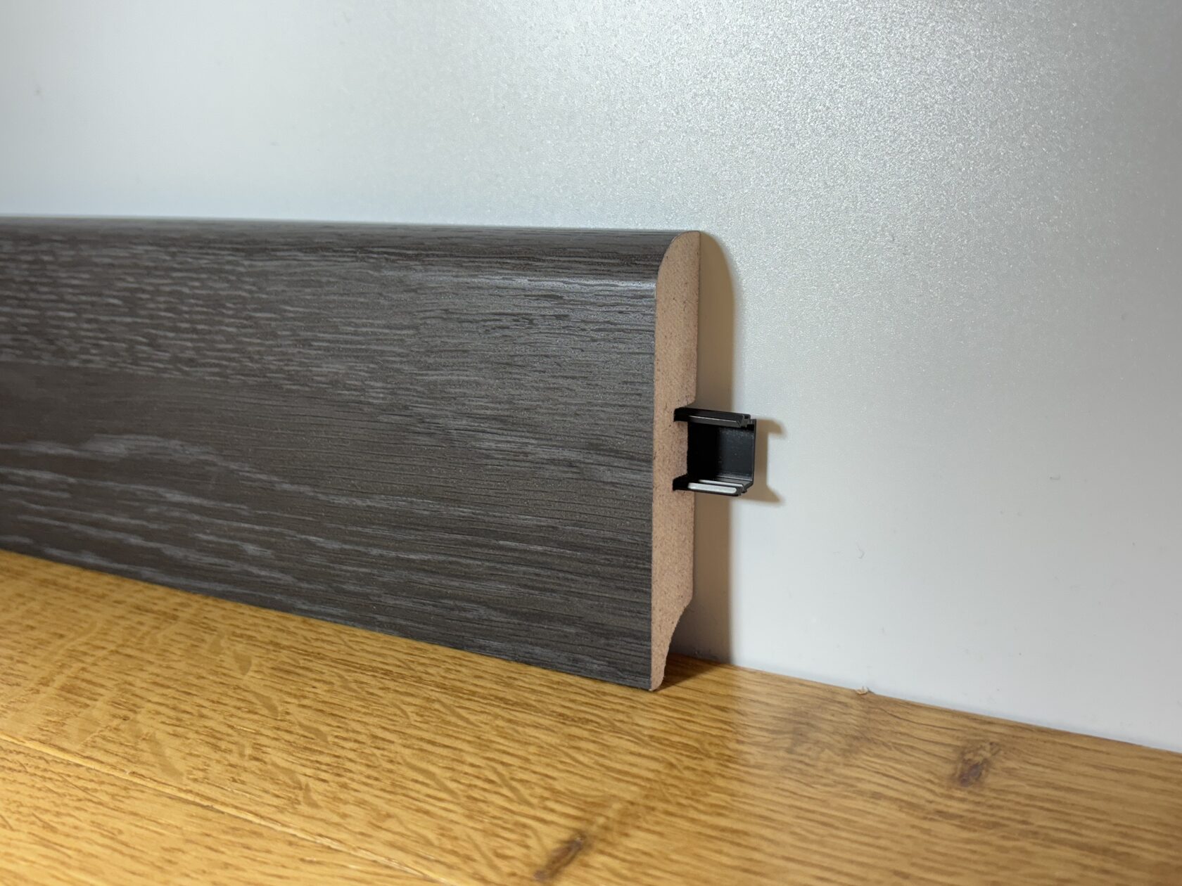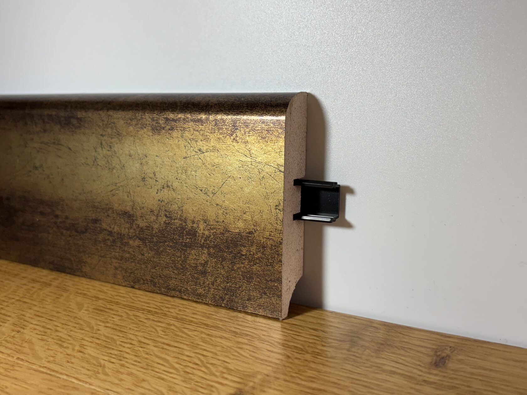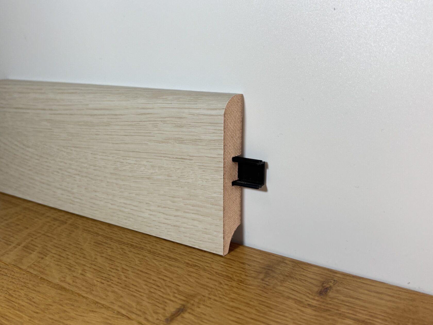Плинтус МДФ создан под самые популярные оттенки напольных покрытий. Оснащен защитным полимерным слоем, который предохраняет от влаги, царапин и химии для уборки. Его безупречная поверхность не притягивает грязь, устойчива к солнцу. Возможна покраска под любой оттенок.