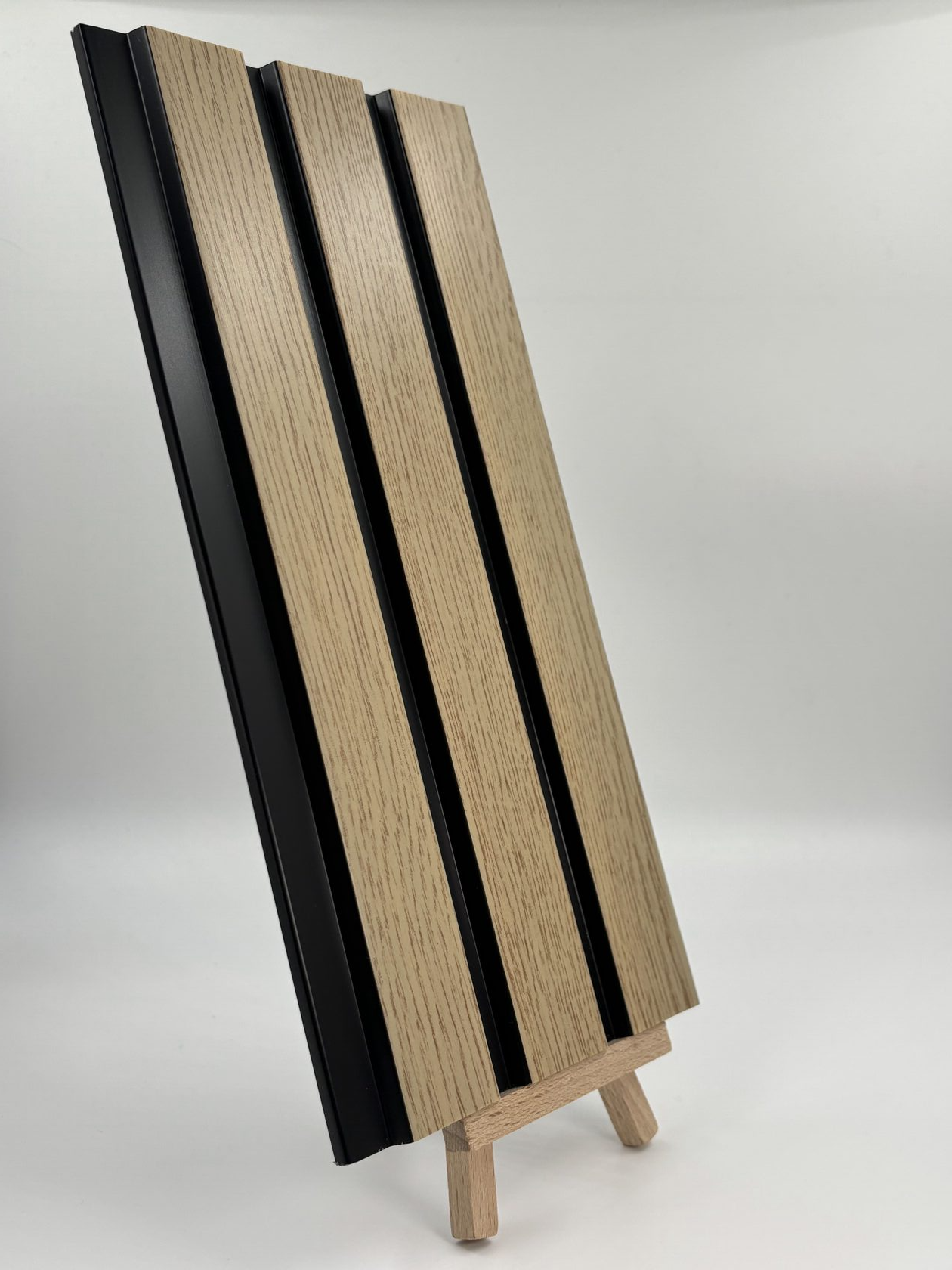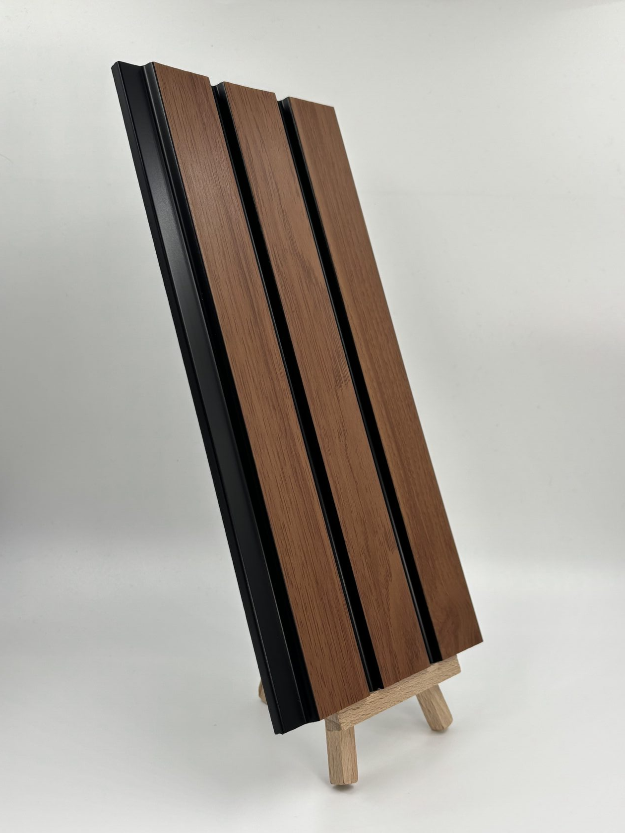 По внешней поверхности мата закреплены декоративные реечные ламели, покрытые пленками ПВХ разных оттенков древесины или однотонных цветов из яркой весенней коллекции.
