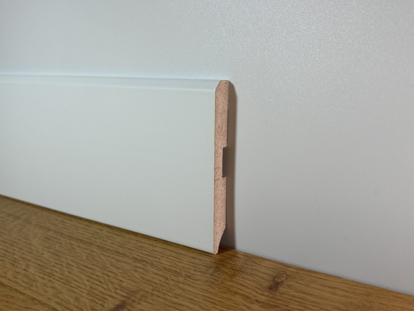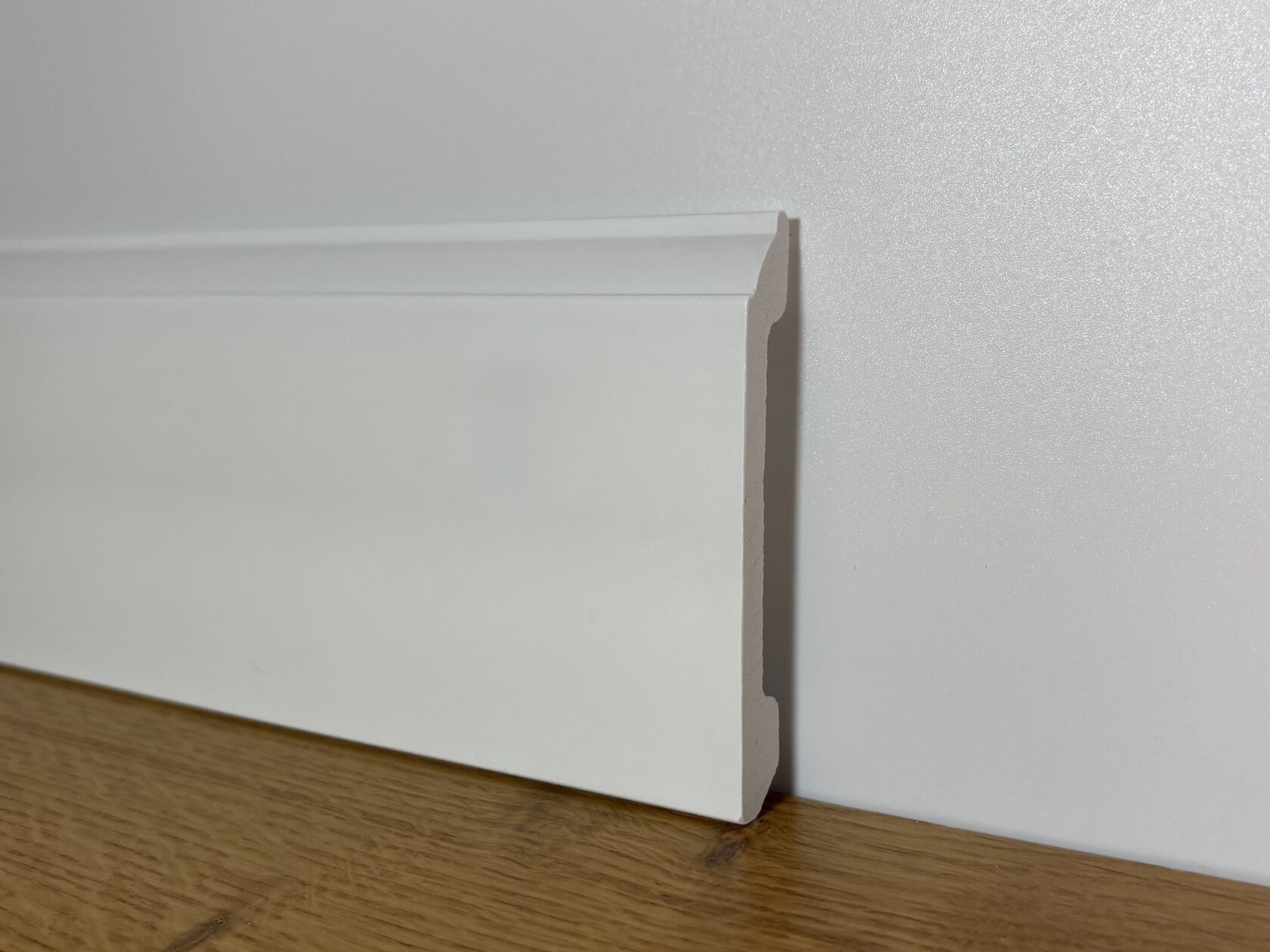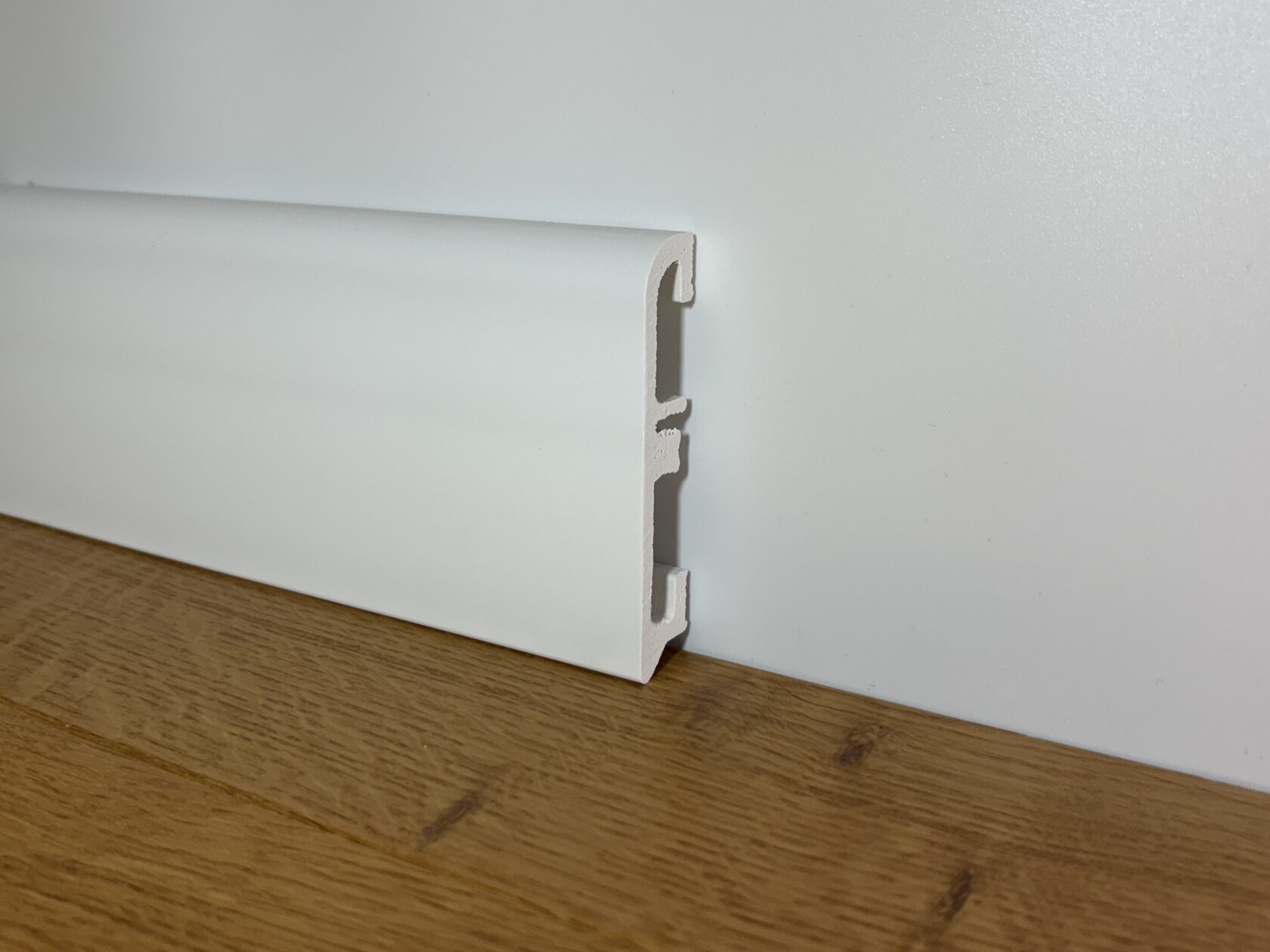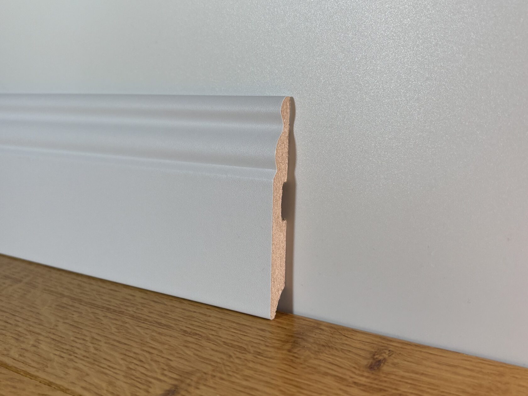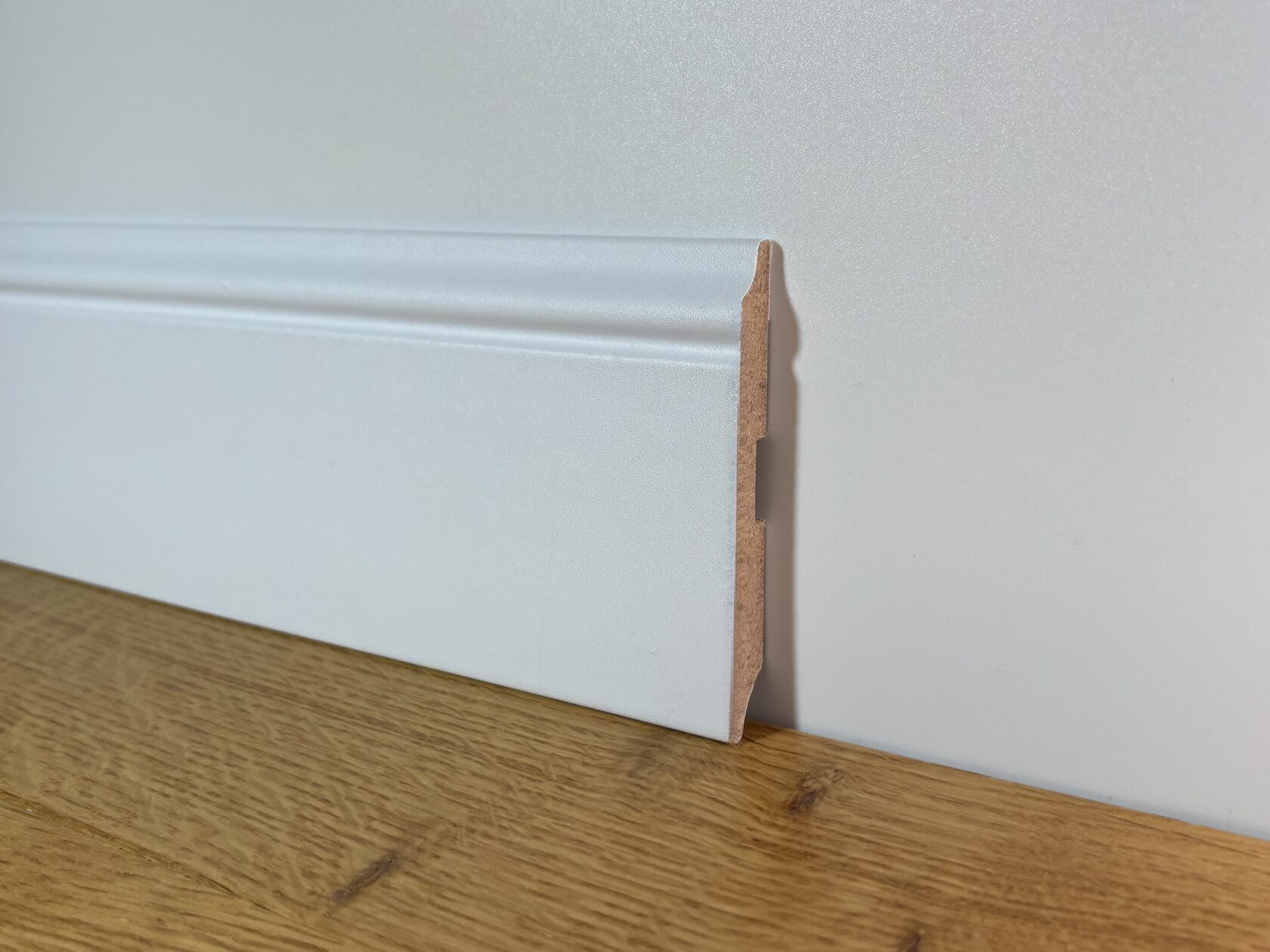 Плинтус МДФ белый оснащен защитным полимерным слоем, который предохраняет от влаги, царапин и химии для уборки. Его безупречная поверхность не притягивает грязь, устойчива к солнцу.