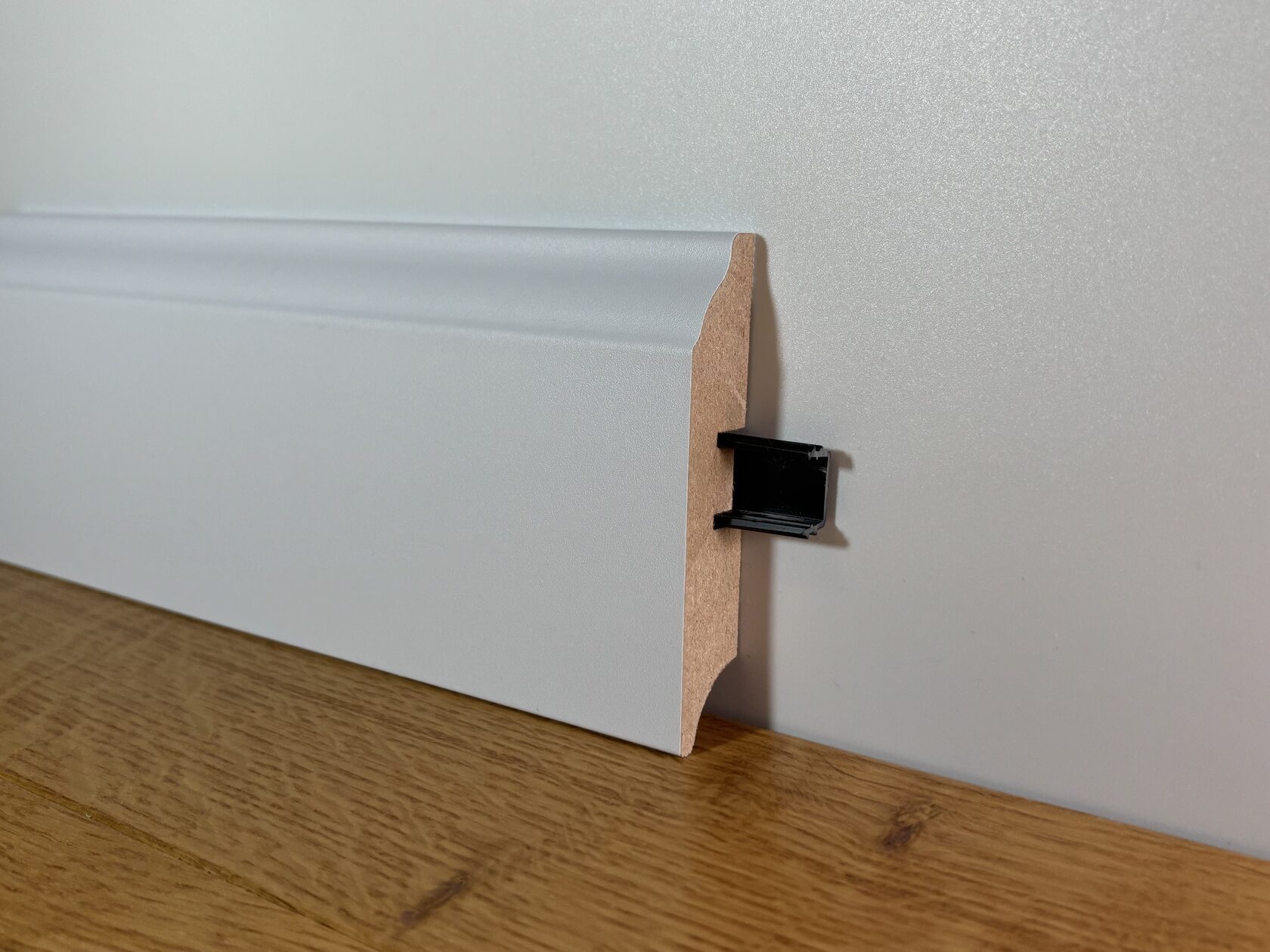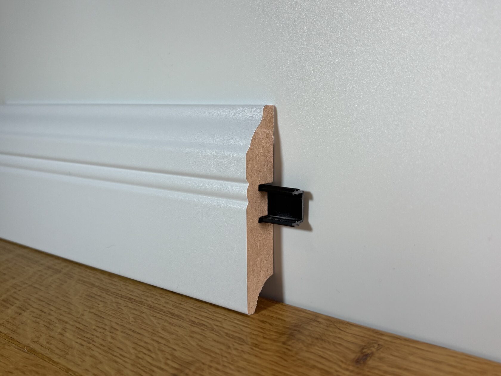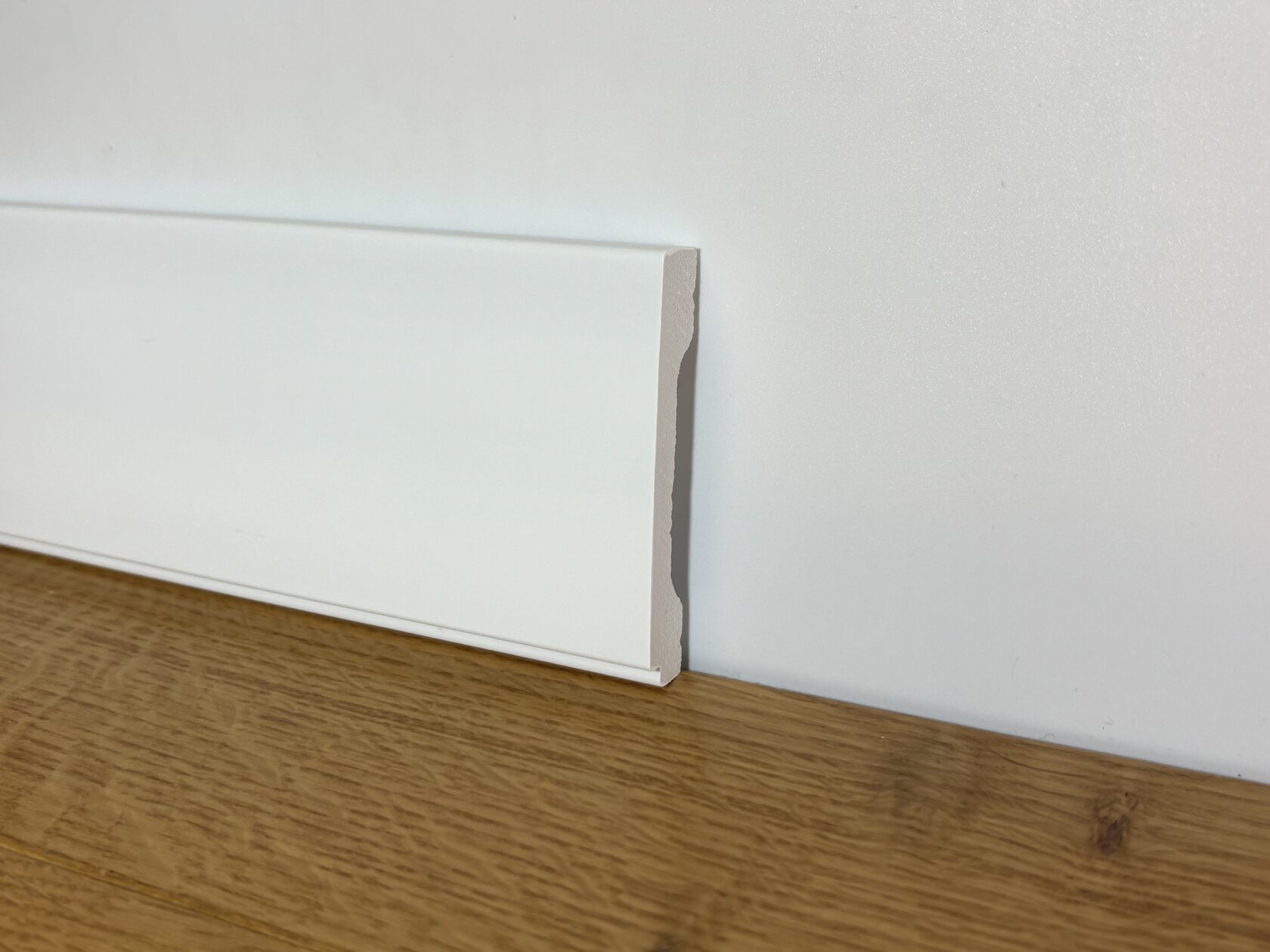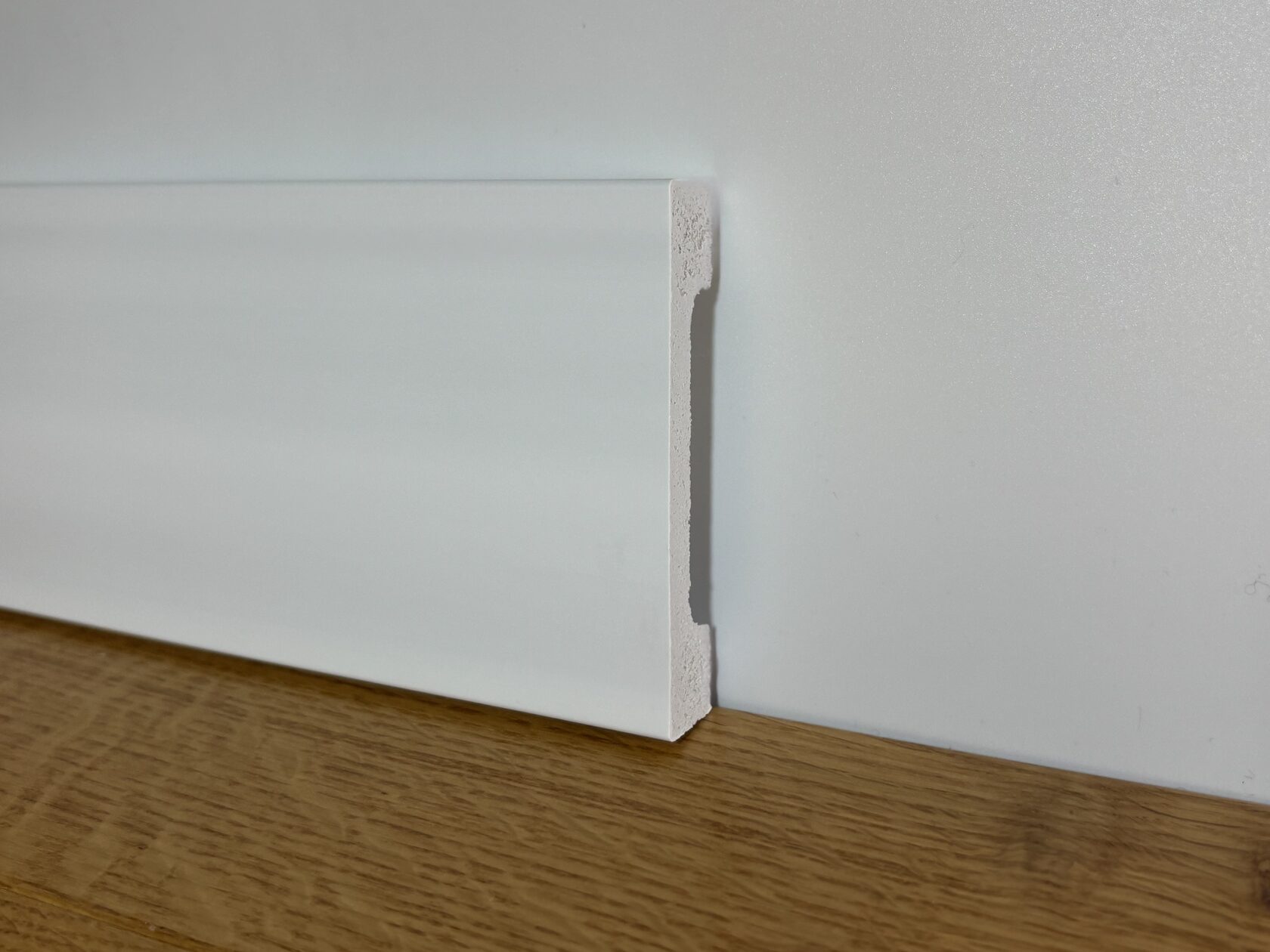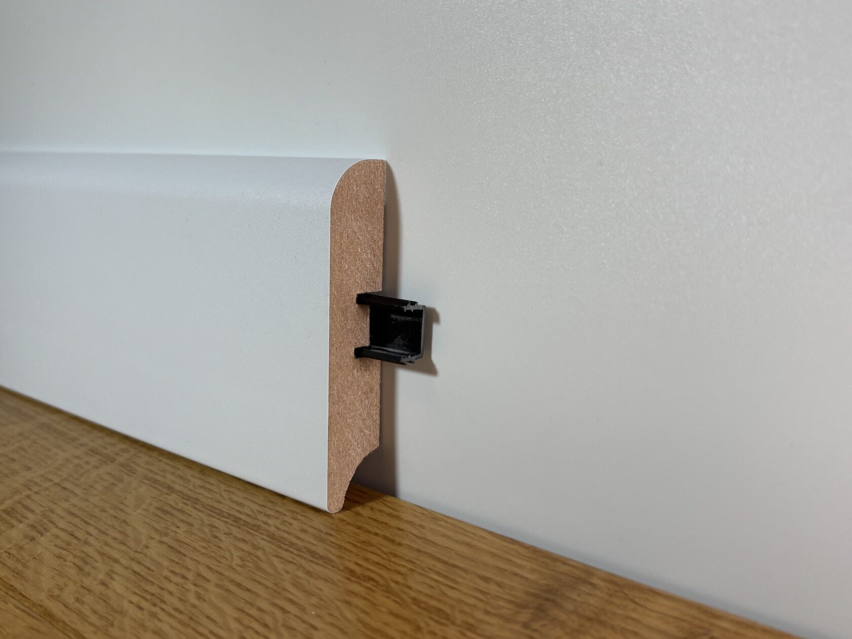 Плинтус МДФ белый оснащен защитным полимерным слоем, который предохраняет от влаги, царапин и химии для уборки. Его безупречная поверхность не притягивает грязь, устойчива к солнцу.