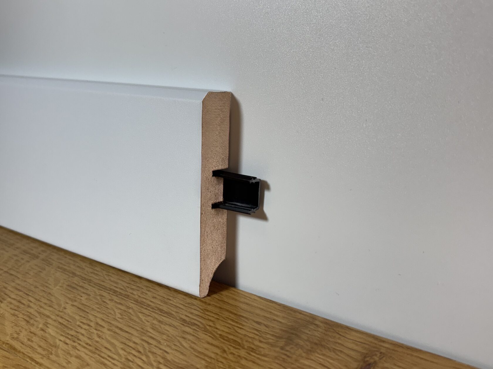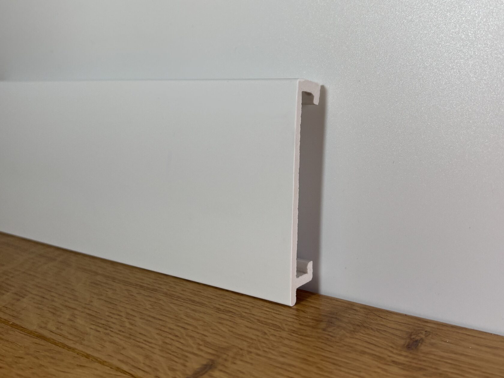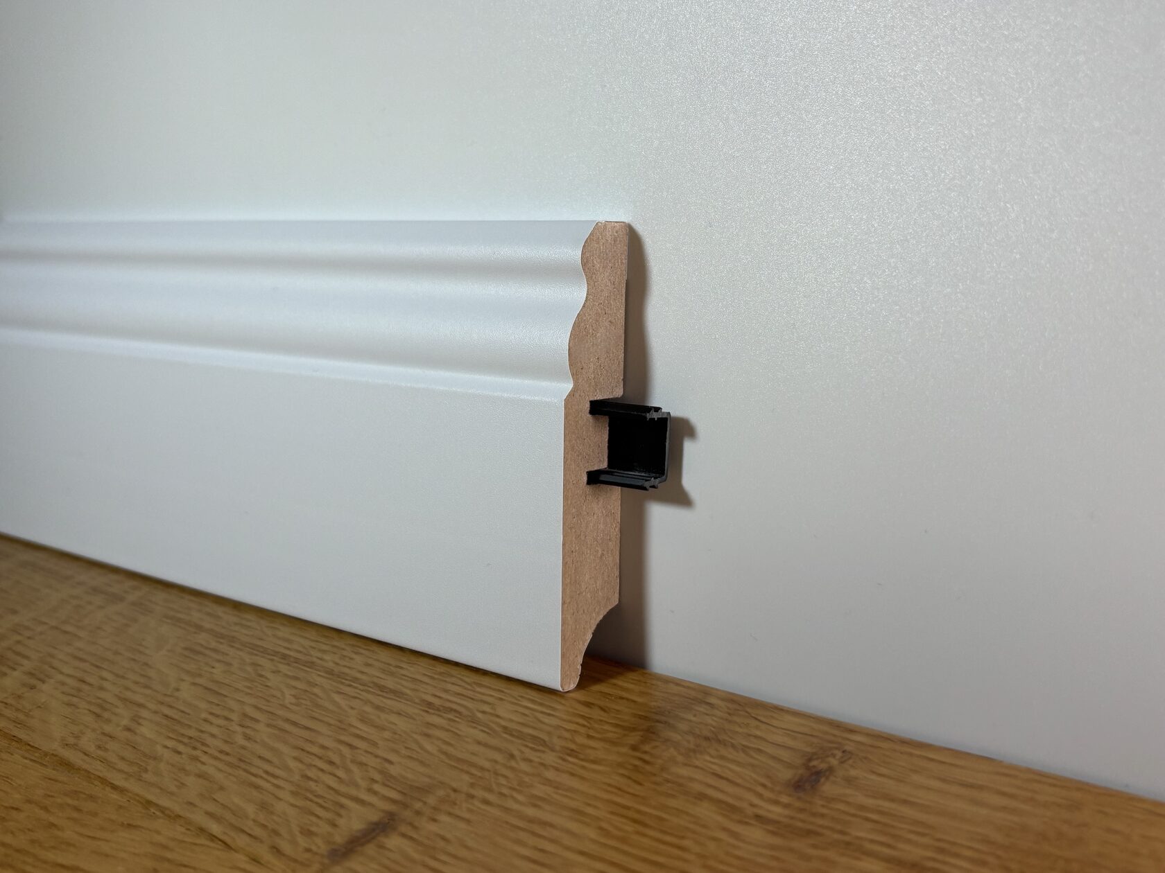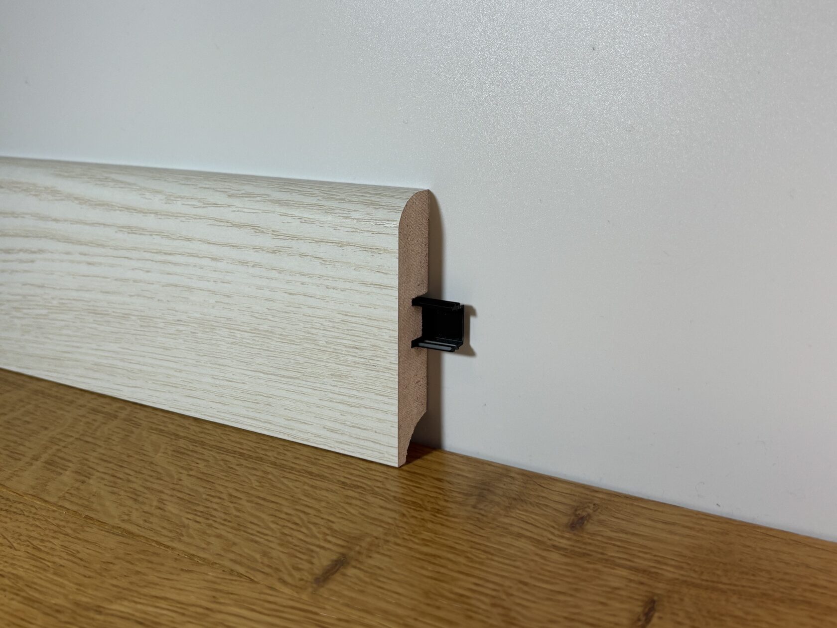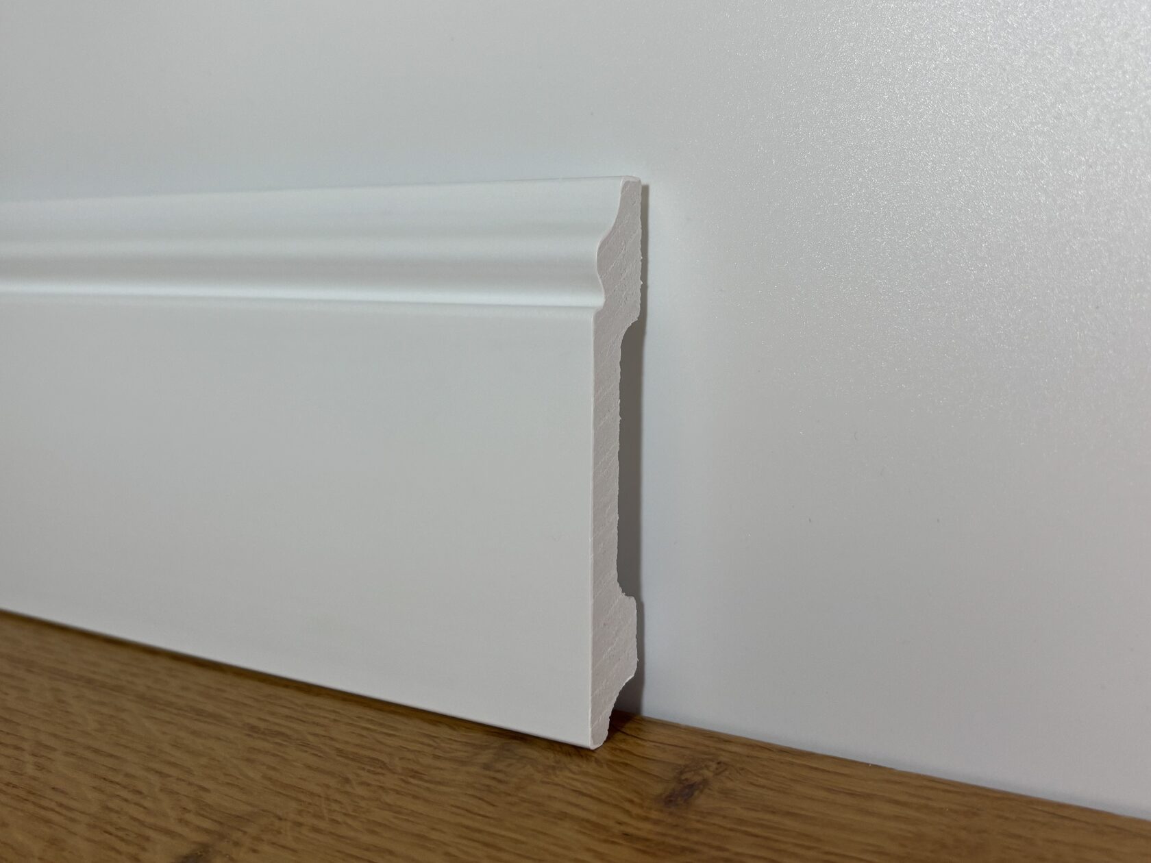 Плинтус МДФ белый оснащен защитным полимерным слоем, который предохраняет от влаги, царапин и химии для уборки. Его безупречная поверхность не притягивает грязь, устойчива к солнцу.